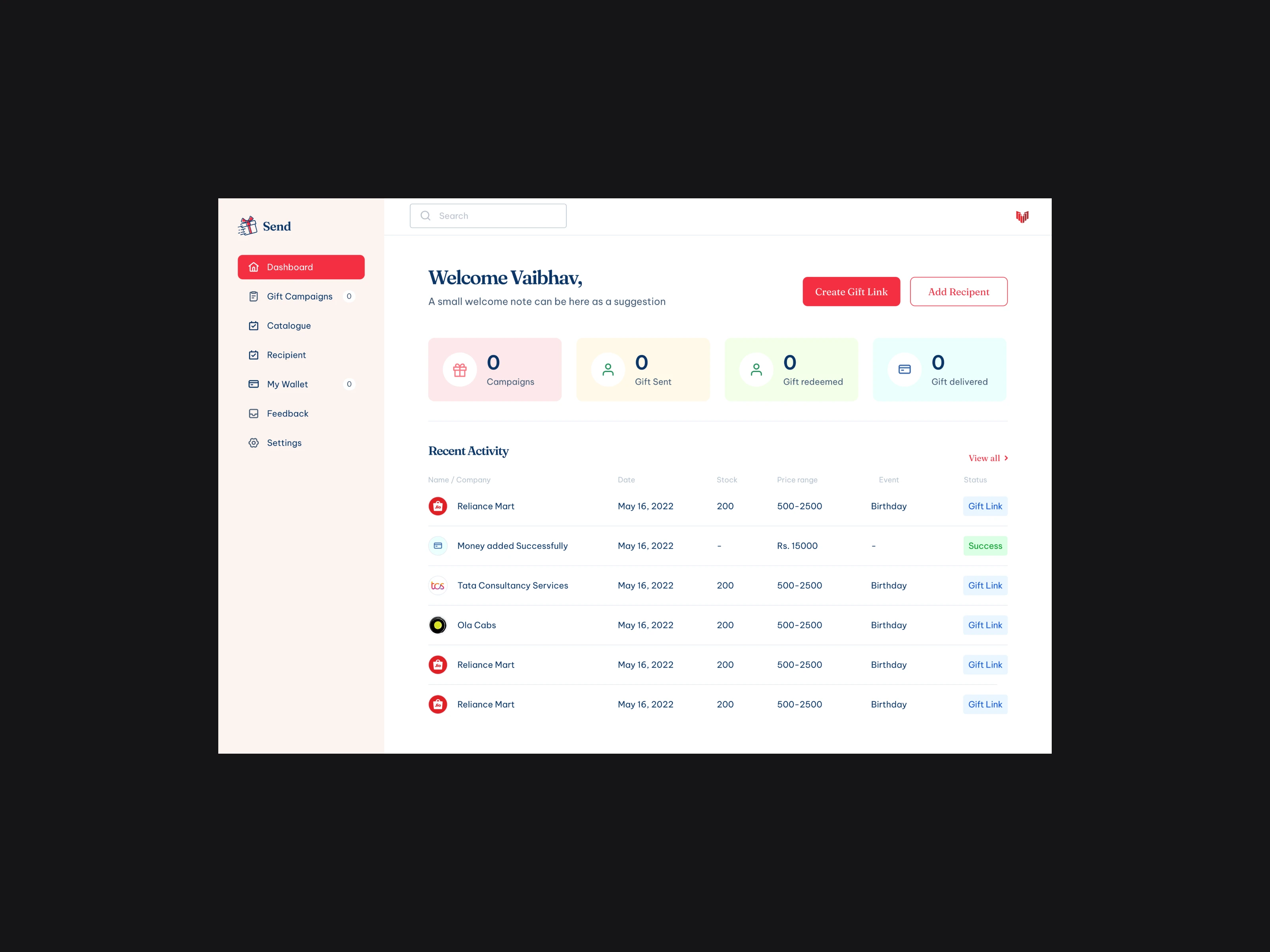 The revolutionary AI gifting assistant that helps businesses improve employee engagement and customer satisfaction through personalized gifting. The platform enables companies to send gifts to employees or allow them to select the gift of their choice and get it delivered.